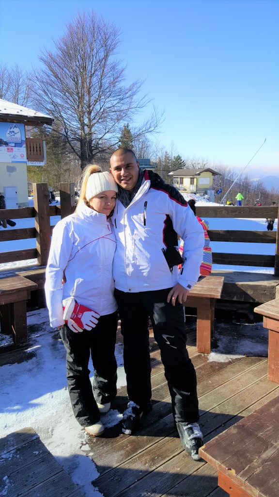 Колкото и да звучи смешно ,първият ден го пропуснах защото ме беше страх да карам ски. Докато останалите успеят да ме убедят аз обиколих цялата зона хаха.. Стояхме на панорамната тераса с часове и пиехме топли напитки. Имаше и няколко търговски обекта които посетих. Проведох и няколко телефонни разговора, а през това време мъжът ми се научи да кара ски и през целият ден се скъса да обикаля пистите. Завидях му с радост и тогава се амбицирах и аз да се науча. И така прибрахме се в уютните дървени къщички и аз уморена от обикаляне и студ заспах. На другият ден пак тръгнахме за пистите, до там пътувахме около 10 км. с кола. Аз вече се бях много амбицирала да се науча да карам. И така ето какво се случи.