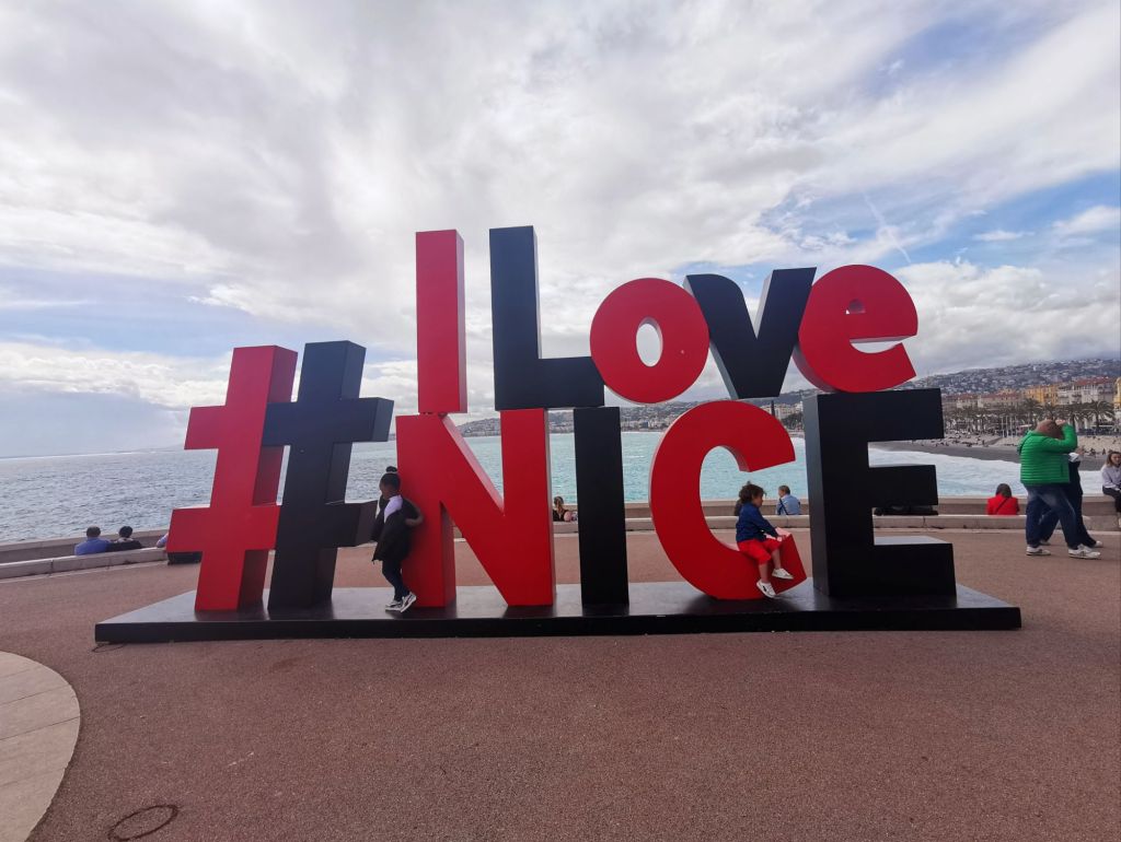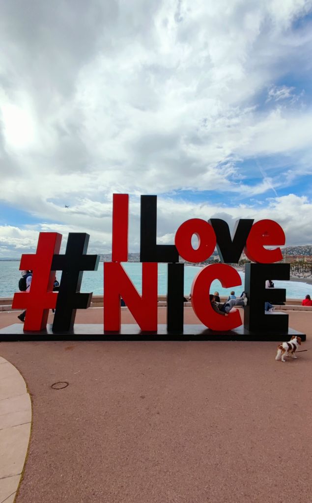 Разхождайки се по брега ще срещнете изумителни проекти като: La Chaise Bleue de SAB и Hashtag ILoveNice. Тук на буквите гигант, всеки новодошъл турист или местен си прави снимки. Ефектния проект е оцветен в червен и черен цвят точно на брега на Лазурен бряг съчетан със самия пейзаж. След около 30 минутно лутане около буквите тръгваме към следващото място което искаме да посетим- Parc de la Colline du Chateau.