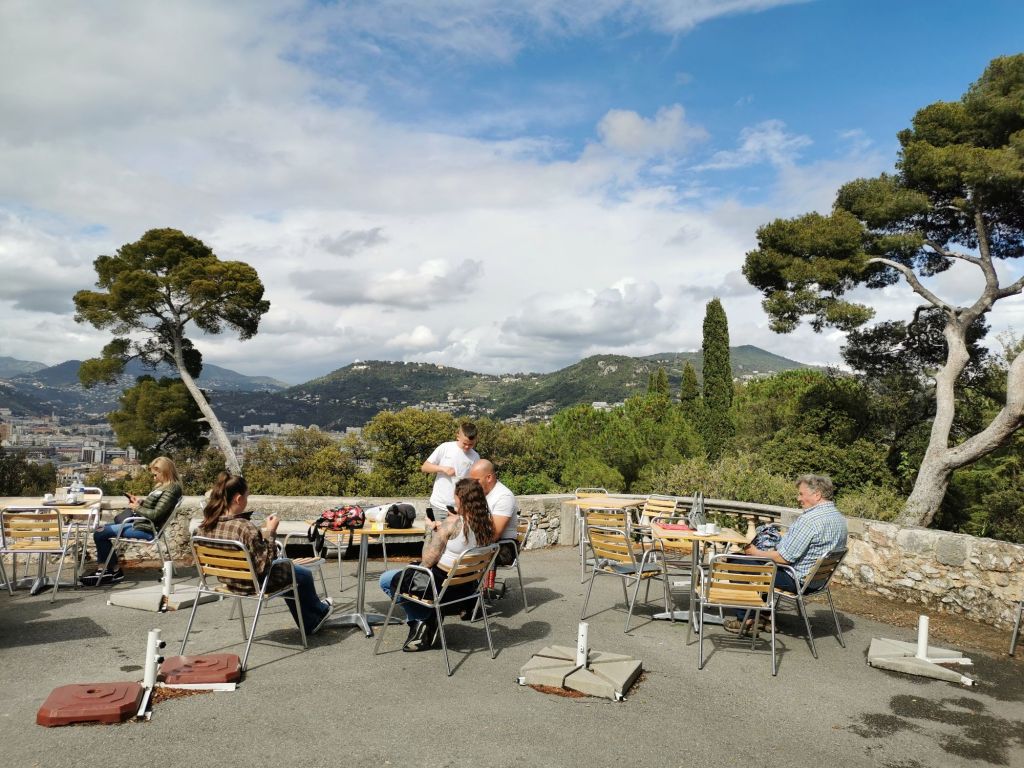 Когато се изкачите ще се озовете на първата панорамна тераса с красив изглед. Тук вече със сигурност ще се уверите че парка разполага с най-красивите гледки от високо към плажната ивица и града. Посетете кулата Беланда, погледнете през терасата и ще се насладите на цялото крайбрежие на Лазурен бряг, също така тя е една от забележителните места в Ница. Не пропускайте и красивия Фонтан спускащ се по склоновете на скалите. Мястото разполага с детски кът и няколко заведения за хранене. След двучасова разходка в парка, отпочинали продължаваме към следващото отбелязано място за посещение-Cours Saleya.