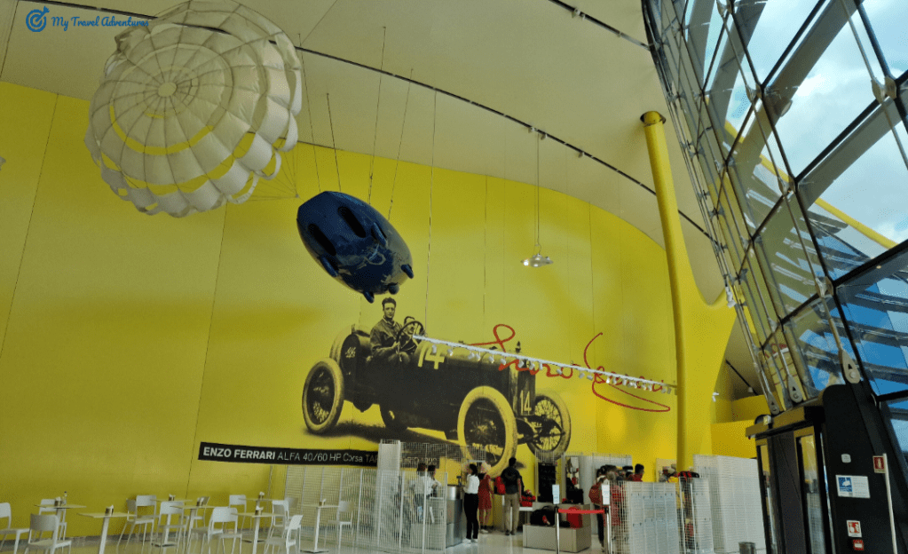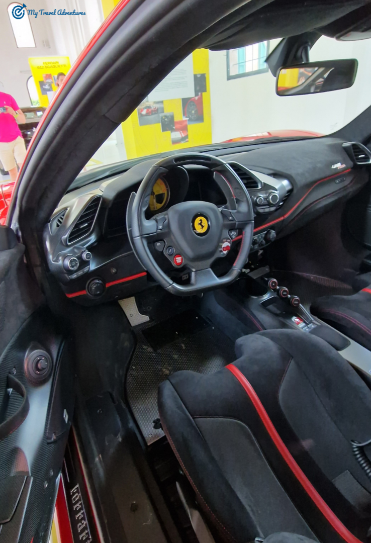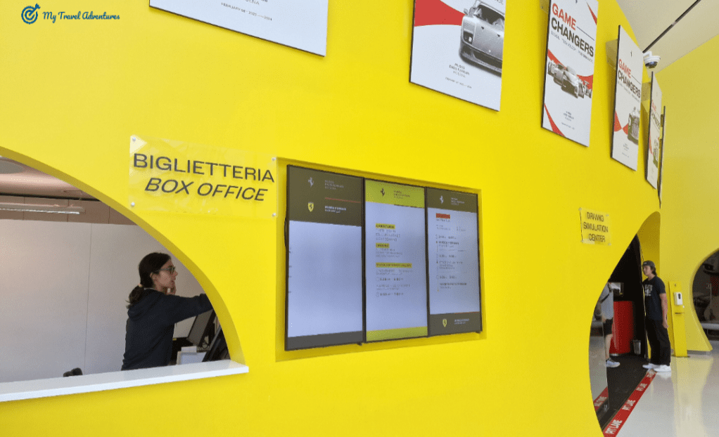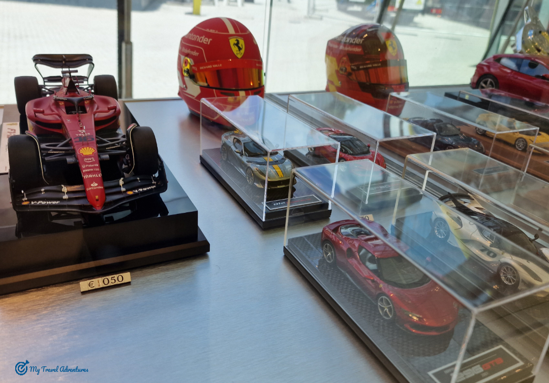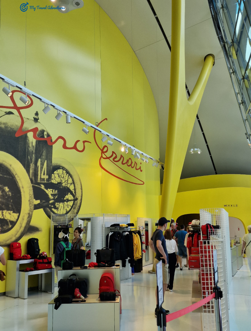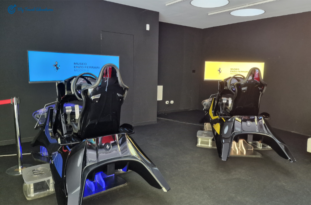 На входа точно до касата за билети, са поставени симулатори на Ферари. Тук може да изпробвате вашите възможности. Времето за каране на симулатор е 7 минути за 25 €. Искате дрехи, аксесоари за спомен- Ferrari Store се намира на няколко крачки от касата.