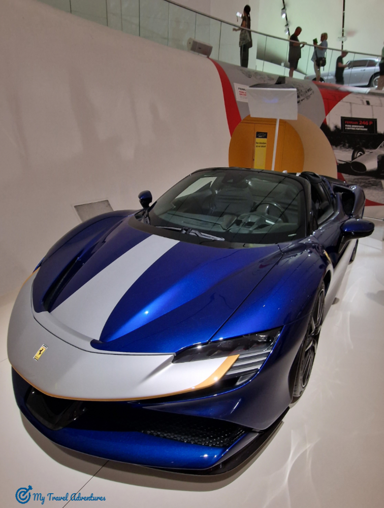 Да стоиш от високо и да се наслаждаваш на колекцията от състезателни коли. Наредени по най-красивият начин в подходяща позиция – лимитирани серии, ретро и съвременни модели вдъхващи живот. Уникални коли като 250 GT Cabriolet (1957), 488 GTB (2015), 488 pista (2018), Ferrari 125 S (1947) и Ferrari 750 MONZA (1954) са само част от уникалната колекция намерили място под жълтия покрив.