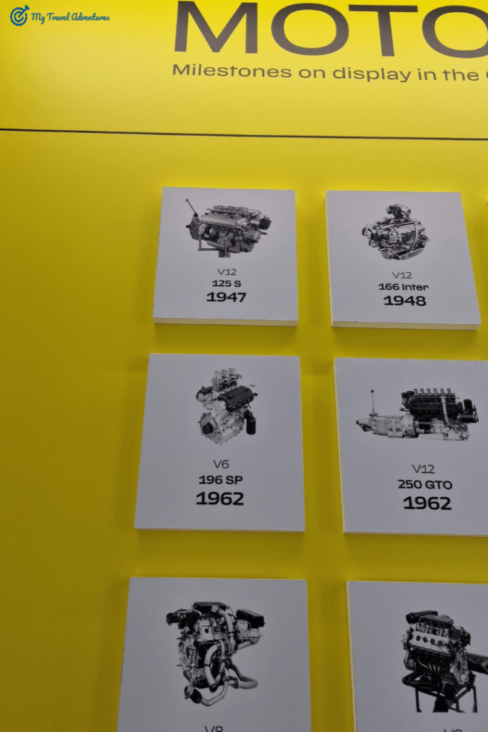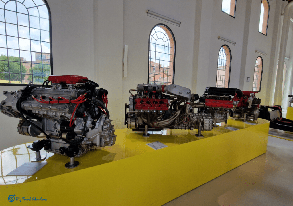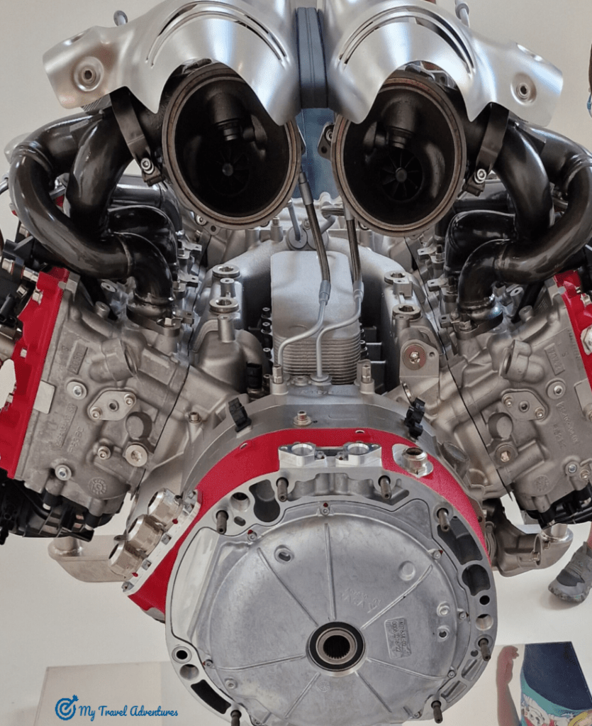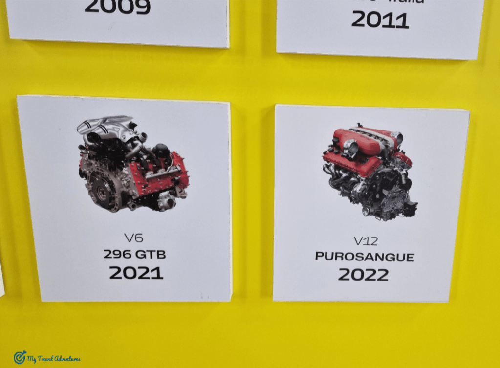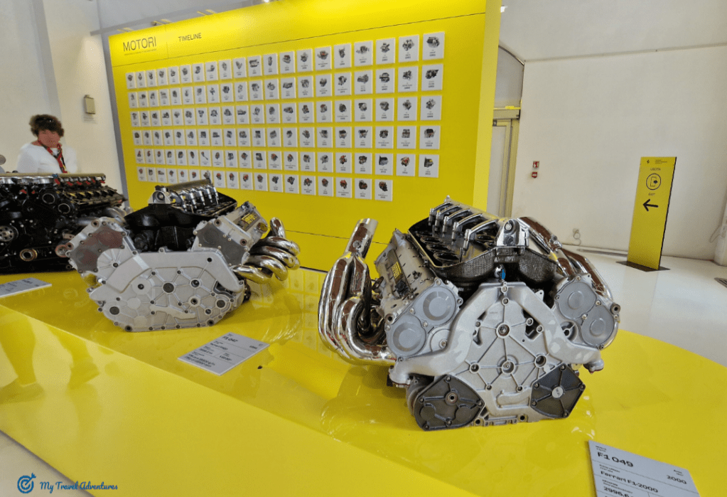 Тук тази част от изложбата е разделена на 3 сектора – 12 цилиндрови двигатели, 8 цилиндровите и накрая посветените на Формула 1. Във всяка една зона има и изложена кола за пример на двигателите. Изложените двигатели бяха около 20 на брой, не можем да видим всички от близо, но на една от стените са закачени снимки на всички мотори изработени през годините.