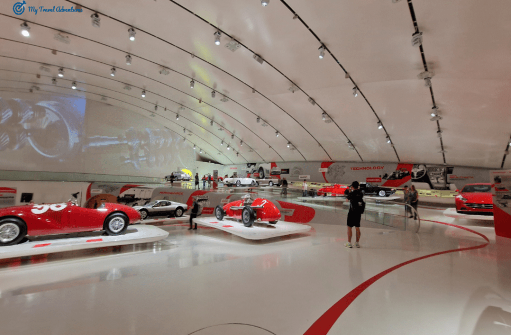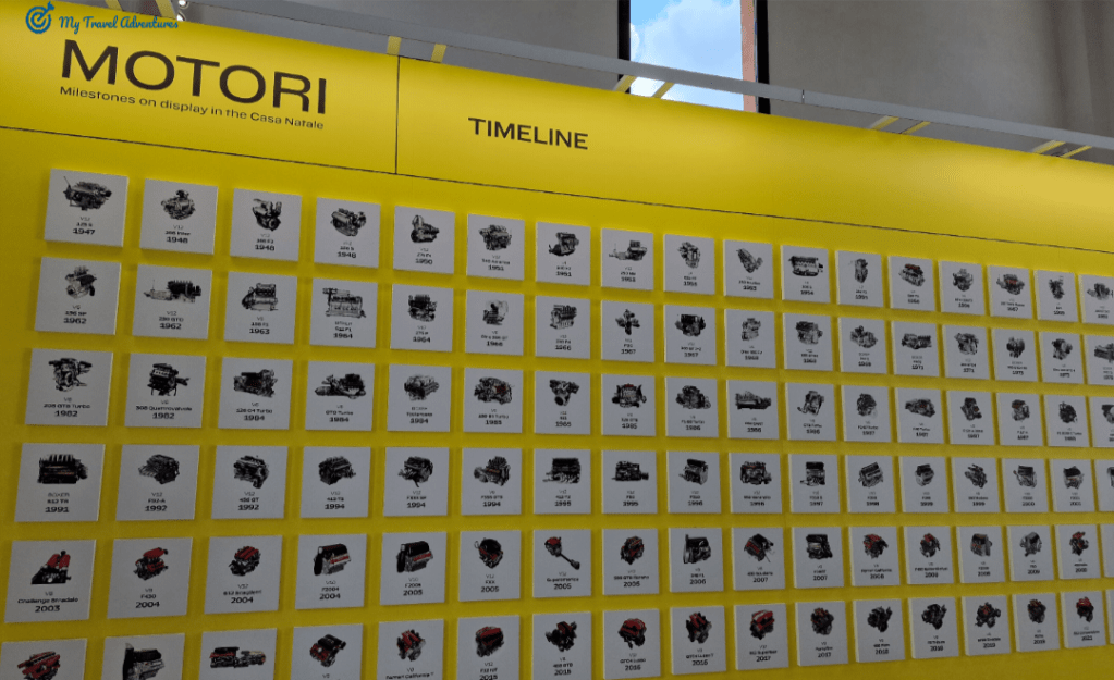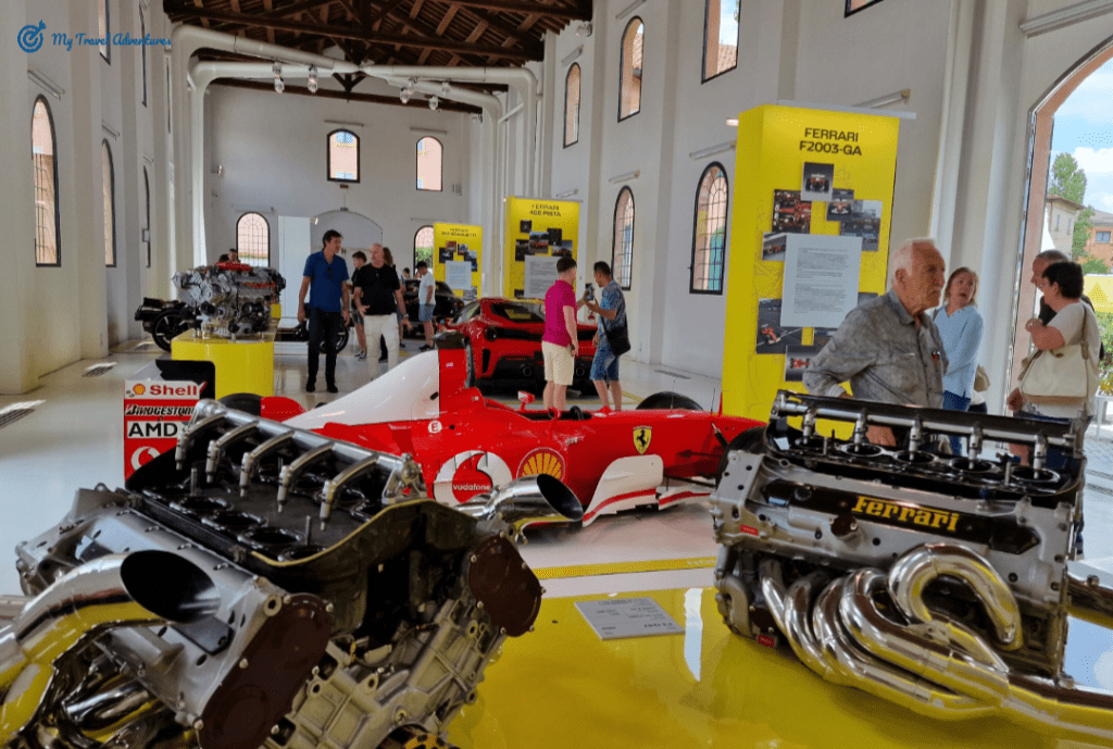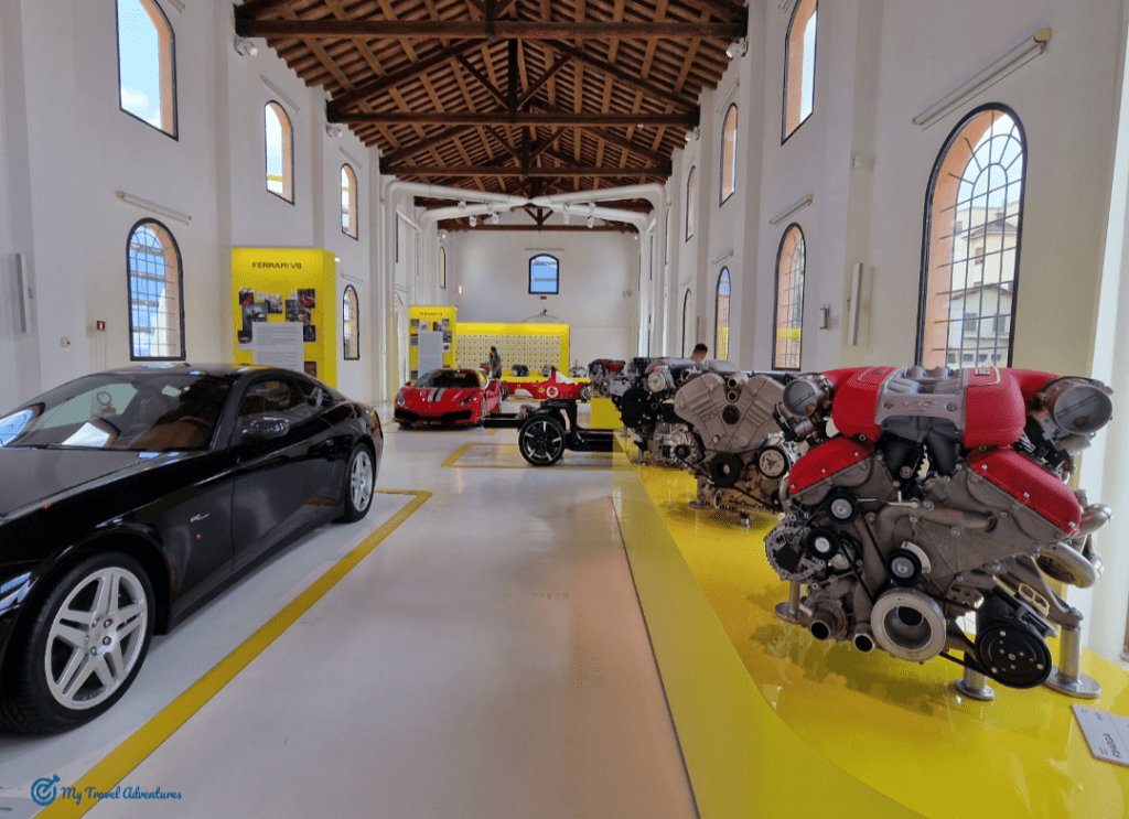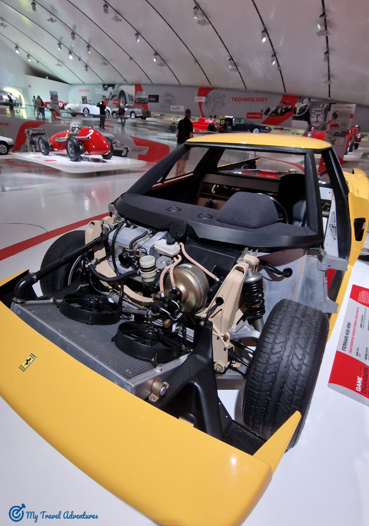 Тук тази част от изложбата е разделена на 3 сектора – 12 цилиндрови двигатели, 8 цилиндровите и накрая посветените на Формула 1. Във всяка една зона има и изложена кола за пример на двигателите. Изложените двигатели бяха около 20 на брой, не можем да видим всички от близо, но на една от стените са закачени снимки на всички мотори изработени през годините.