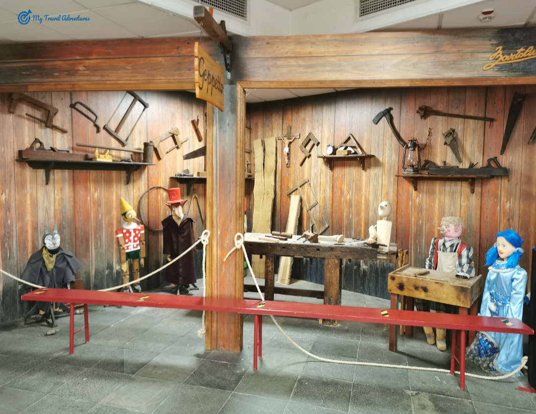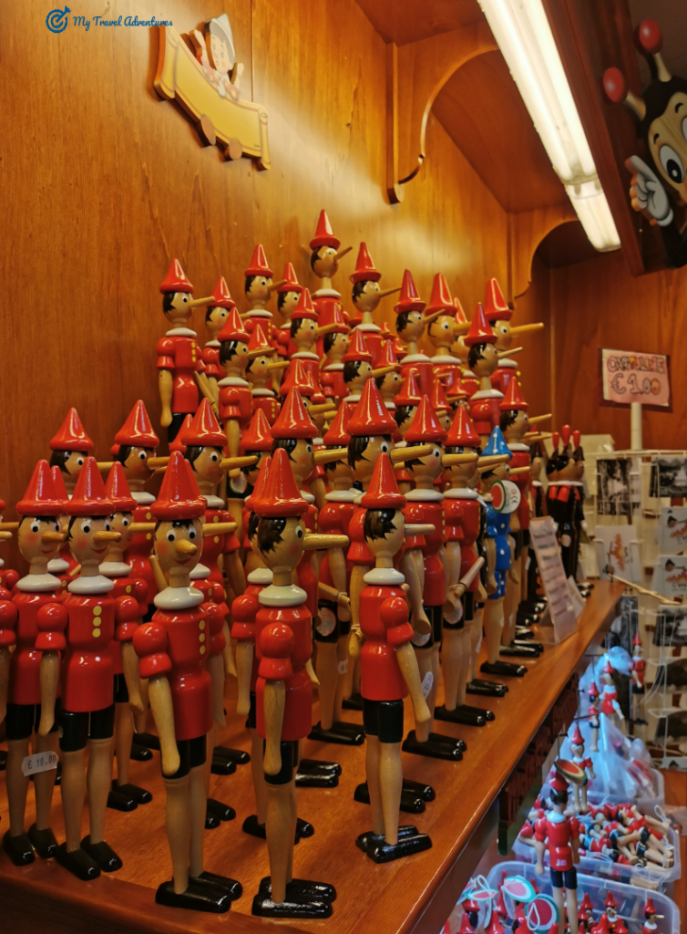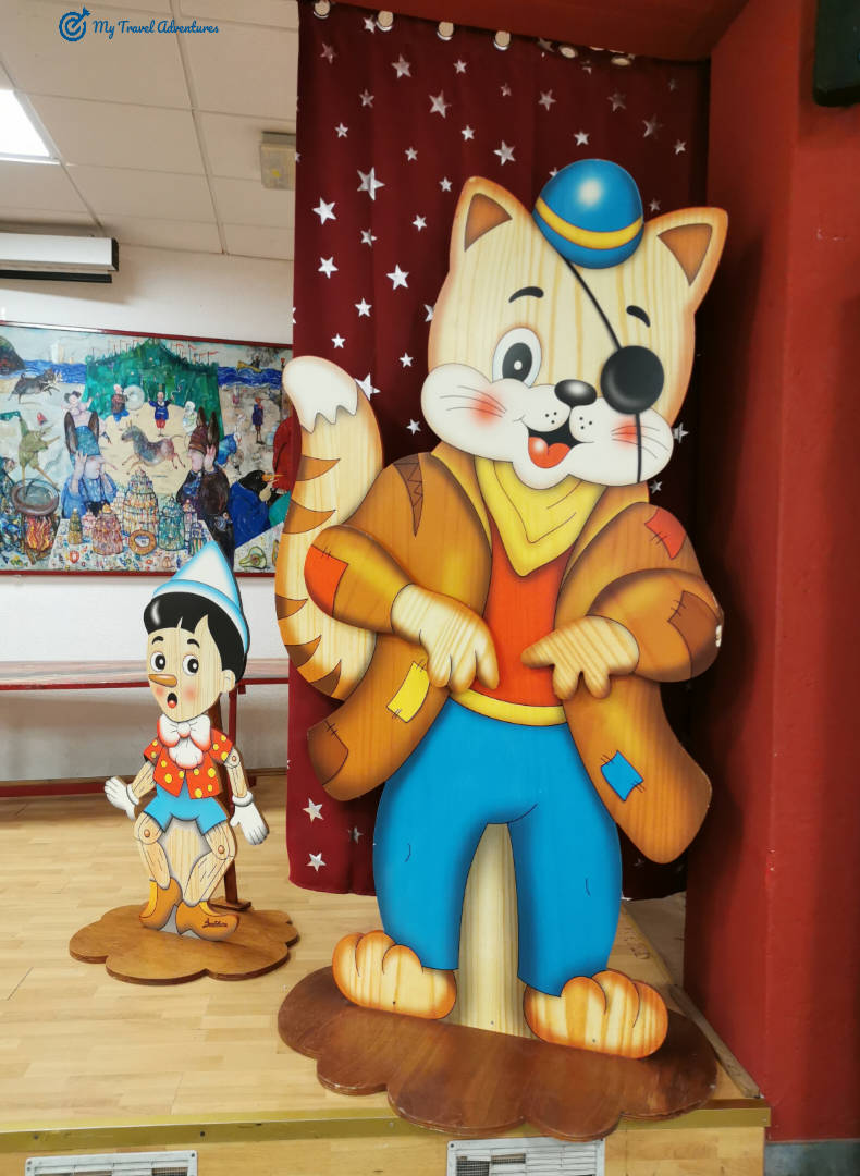 Тази невероятна галерия наредена с дървени кукли се намира точно преди изхода. Тук се намира и магазина за сувенири на тема Пинокио.