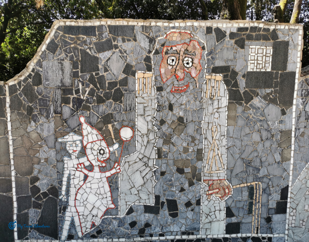 Точно до зоната за пикник се намира малкия площад на мозайките. По стените му са изобразени различни цветни фигури от приказката за Буратино.