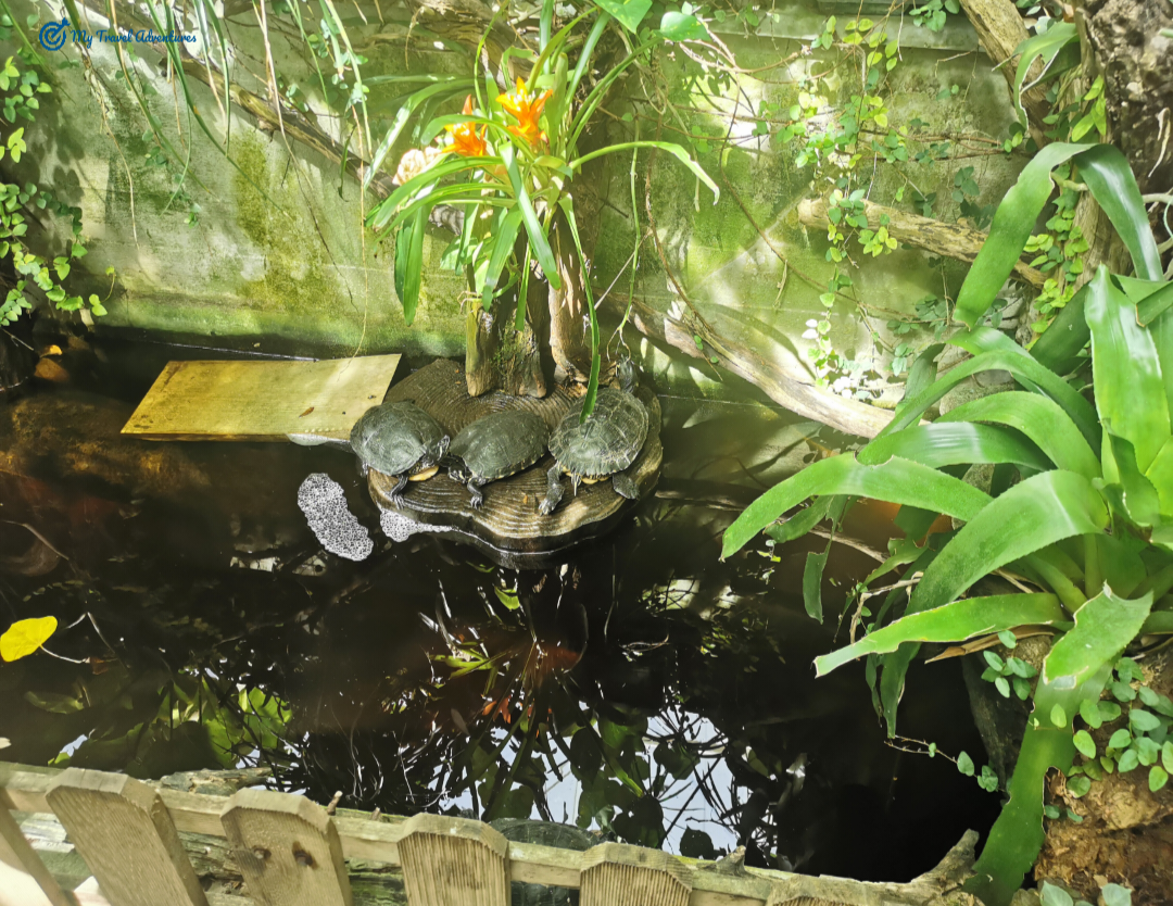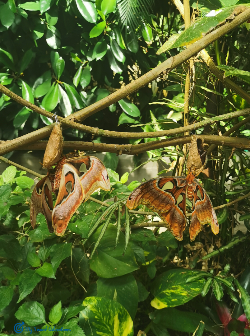Както споменах цената на билета включва три парка. Излизаме от парка доволни, отклоняваме се от пътя и продължаваме към Къщата на пеперудите, а тя се намира на 100м разстояние. Това е тропическа градина с буйни растения, цветя и плодове благодарение на перфектната реконструкция. Къщата на пеперудите е обитавана от стотици пеперуди родени в тропически или екваториални райони – където пеперудите са най-големите и най-цветни. Тук пеперудите и молците се ухажват, хранят се и се размножават в перфектен баланс с околната среда, защитени са от неприятелски насекоми и паяци благодарение на присъствието на малки птици, които се хранят с тях.