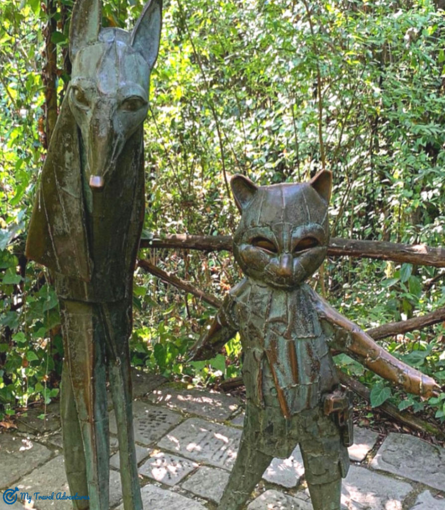 Отпочинали продължаваме нашето вълнуващо преживяване. Навлизаме все по навътре в парка и докато се оглеждахме наоколо, в даден момент осъзнаваме че се намираме в приказна градина. А тук разказите (в книгите за Пинокио) оживяват благодарение на скулпторите разказващи събитията и приключенията на героите. Ето тук на това място между бамбука и скулпторите стават невероятни снимки, а атмосферата е пресъздадена така че всякаш се намираш в самата приказка.