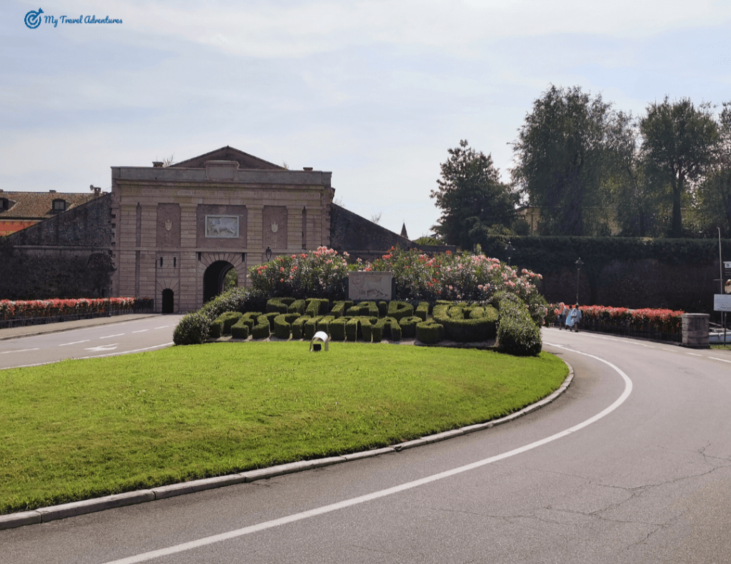 2 В случай че паркирате на Parking/Parchetto, тръгвате в посока езерото и към Bastione Tognon. От тук както ви води пътя, минете през Canale di mezzo и на хоризонта ще видите парк Parco Catullo – това е малък озеленен парк с места за отдих. Като стигнете края на парка завивате в ляво, посока Porta Verona, а ако продължите още ще откриете големите букви от храсти и Il Ponte Dei Fiori – мостът с цветята.