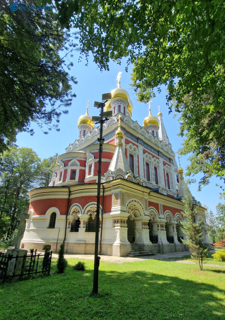 Както виждате сградата е изградена изцяло в руски стил. Църквата има един голям купол в центъра и четири по малки позлатени купола. Средствата за построяване на храм-паметника са набрани чрез дарения събрани предимно в Русия, но и България участвала чрез дарения от български граждани. Храмът е включен в списъка на 100 те национални туристически обекта под номер 92. Дълбока история се крие в подземието на храма, но каква е тя ще ви разкажа в отделна публикация, а тук ще добавя линк.