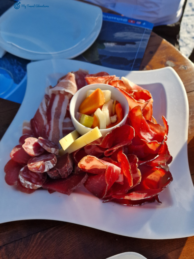 Италианската кухня е толкова вкусна че ще си оближете пръстите на ръцете. Можете да пробвате местните сирена, прошуто, салами и да изберете най-доброто вино, а да пиеш вино във висока чаша и то на пистата в Ливиньо си е голямо предизвикателство, особено когато температурите са -11° и дори изгрялото слънце не може да ви стопли. На мястото има DJ които се сменя всеки ден, по този начин музиката допринася за настроението в критични условия. В случай че си поръчате пържени картофки, гледайте да ги изядете бързо защото ще замръзнат. За наше учудване цените тук в заведението на ски пистата не са много високи, но ако пообиколите със сигурност ще намерите и други на по-скъпи цени, например в ресторант Алпина цените бяха много по-високи от очакваното. По време на разходката си задължително намерете свободно време да изпиете едно горещо какао на открито с гледка към натрупания сняг.