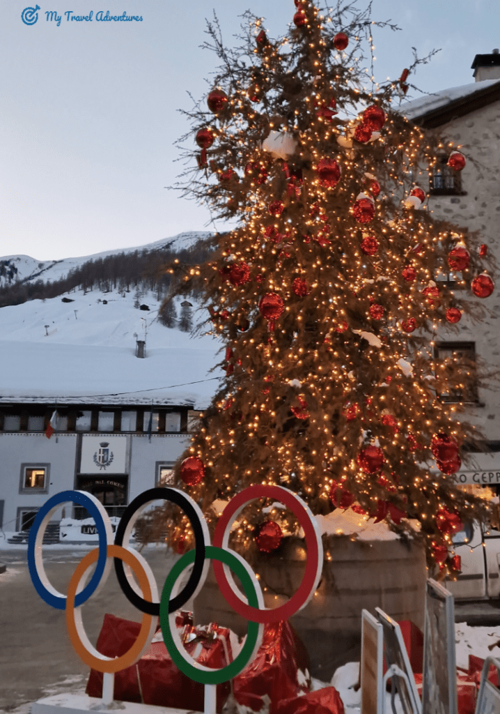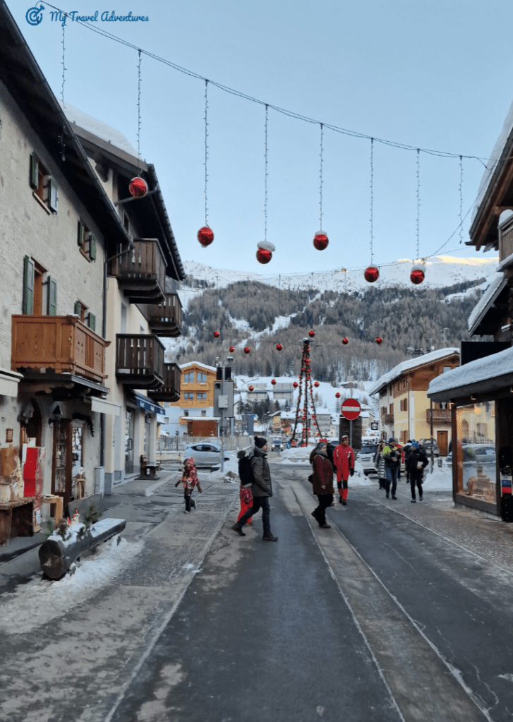 По време на коледа целият град е украсен с коледни светлини както всички останали градове в Италия, но с единствената разлика че тук всичко е бяло и заснежено, а когато има сняг обстановката става още по приказна. Ако сте забелязали коледните топки върху елхите и уличната украса са червени за да изпъкват повече на снега. Докато се потапяме в тази вълшебна коледна среда, може да се отдадете на коледно пазаруване в над 250 безмитни магазина далеч от трафика и под закрилящия шал на планината. Сред най-предпочитаните магазини със сигурност са магазините за парфюми, козметика, очила, магазини за бижута и бутикови магазини за дрехи.