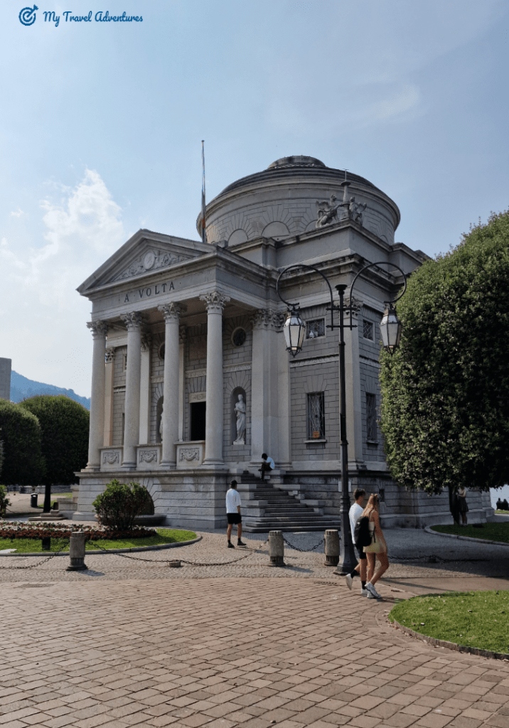 Музеят Волтиано е построен във формата на храм от архитект Федерико Фригерио и се намира на крайбрежната алея Lungolago в град Комо. По време на построяването на музея дизайнерът на сградата искал да се откъсне от местния контекст като построй музея по подобие на Пантеона, заемайки неговата форма. Работата по изграждането му започва през 1925 г. и e официално открит на 15 юли 1928 г. В днешно време музеят Волта е най-посещаваният музей в Комо. Той съдържа постоянна изложба посветена на паметта на Алесандро Волта и признаването на неговата научна работа. Музеят Волта е заобиколен от градини и плажове където посетителите в Комо, особено по-младите обичат да прекарват времето си на открито.