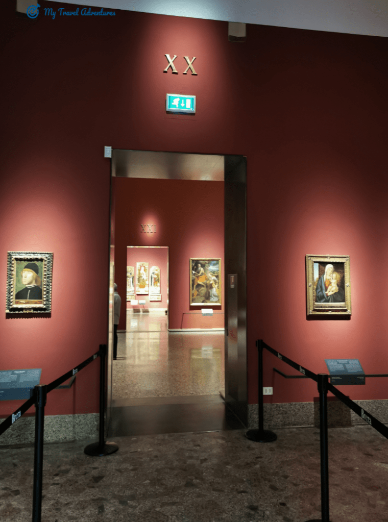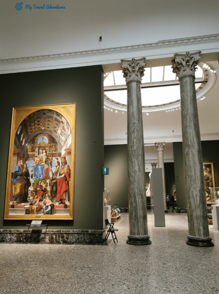 Pinacoteca di Brera e една от най-големите галерии в Милано. Тя поддържа 38 зали с картини подредени в хронологичен ред освен залата Х ,която представя картини от 20 век. Тук е забранено да се правят видео, селфита, снимки ,въпреки че аз успях да заснема няколко кадъра, домашните любимци не се допускат, както е забранено да се внася храна и не се пуши.