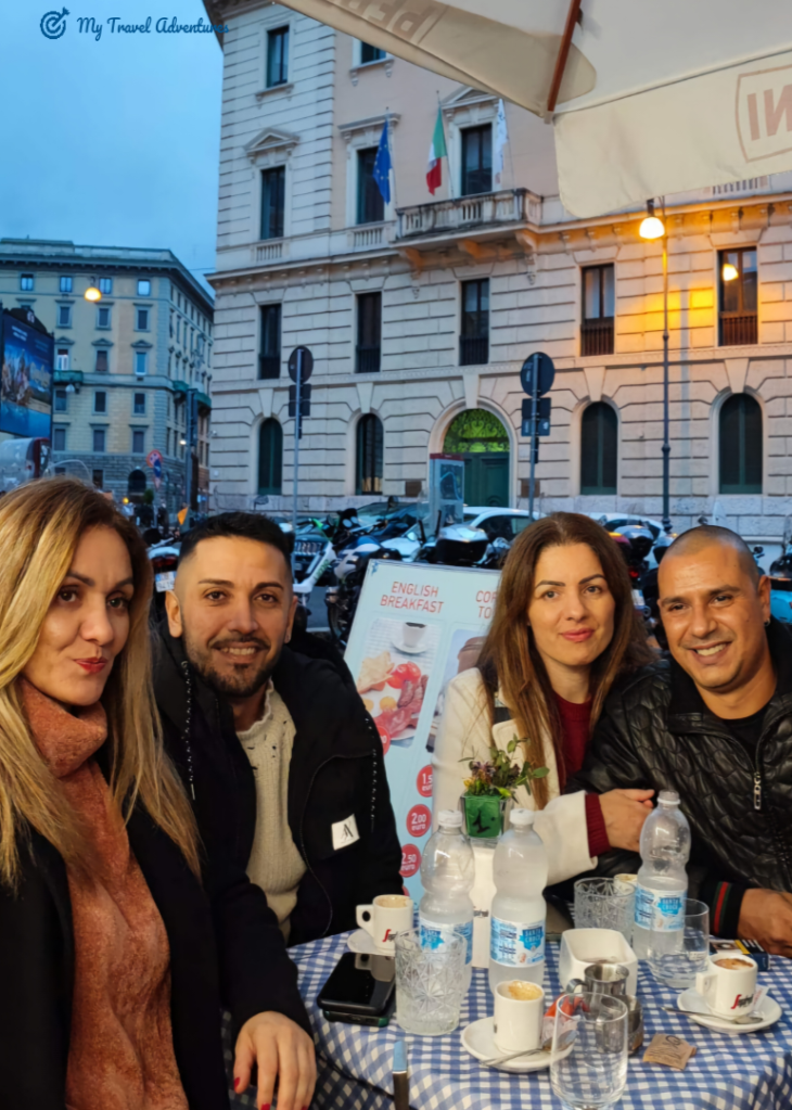 Не след дълго в голяма близост до хотела откриваме нашето заведение за хранене, малко като размер, но вътре уютно и комфортно. Поръчваме spaghetti alla carbonara(спагети) и piatto antipasto all’italiana(предястие). Разбира се опитах и от вкуса наCacio e Pepe, също едно уникално вкусно като spaghetti alla carbonara. Един съвет от мен: -Ако посещавате Рим, потърсете такова място и се насладете на римския вкус.