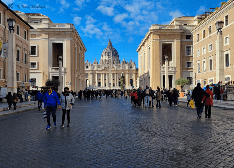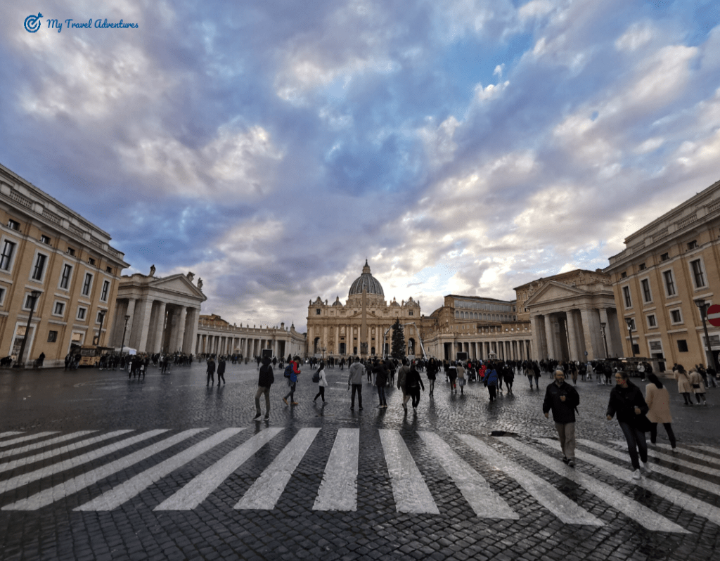 Да се настаним в хотела ни беше нужно около 30 мин., а след това се запътихме към центъра на града или към нашата първа забележителност Ватикана (малката държава). Докато вървяхме по главната улица срещнахме само движещи се коли и автобуси, а местните сякаш се бяха изпарили. Питах се на няколко пъти: Къде са хората? И в крайна сметка всички посетители бяха около Ватикана.