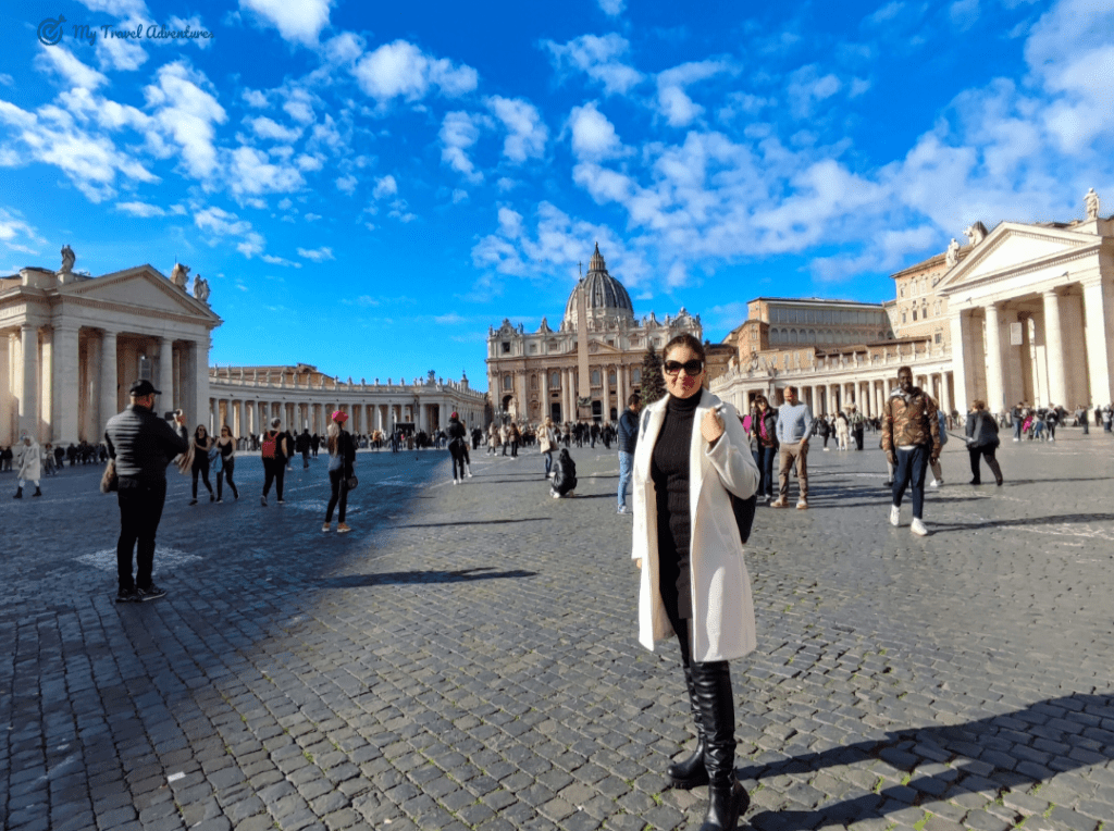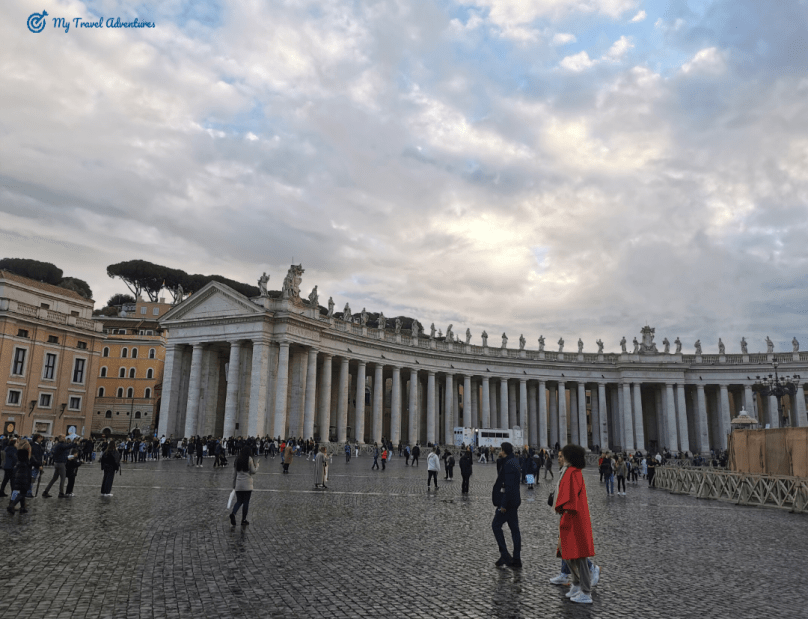 Освен площад Свети Петър, тук се намира и базиликата Свети Петър, като тя се смята за най-голямата католическа църква в света. В голяма близост до църквата се намират и ватиканските музеи. Докато се разхождахме на площада видяхме много голяма опашка от хора, чакащи реда на посещението си. Ние нямахме билети за вход, но имахме билети за Колизеума на следващия ден. Малката държава издава сама собствените си монети и печати и използва еврото като своя валута благодарение на специално споразумение с Европейския съюз. Същите тези монети са много търсени и колекционирани от колекционерите.