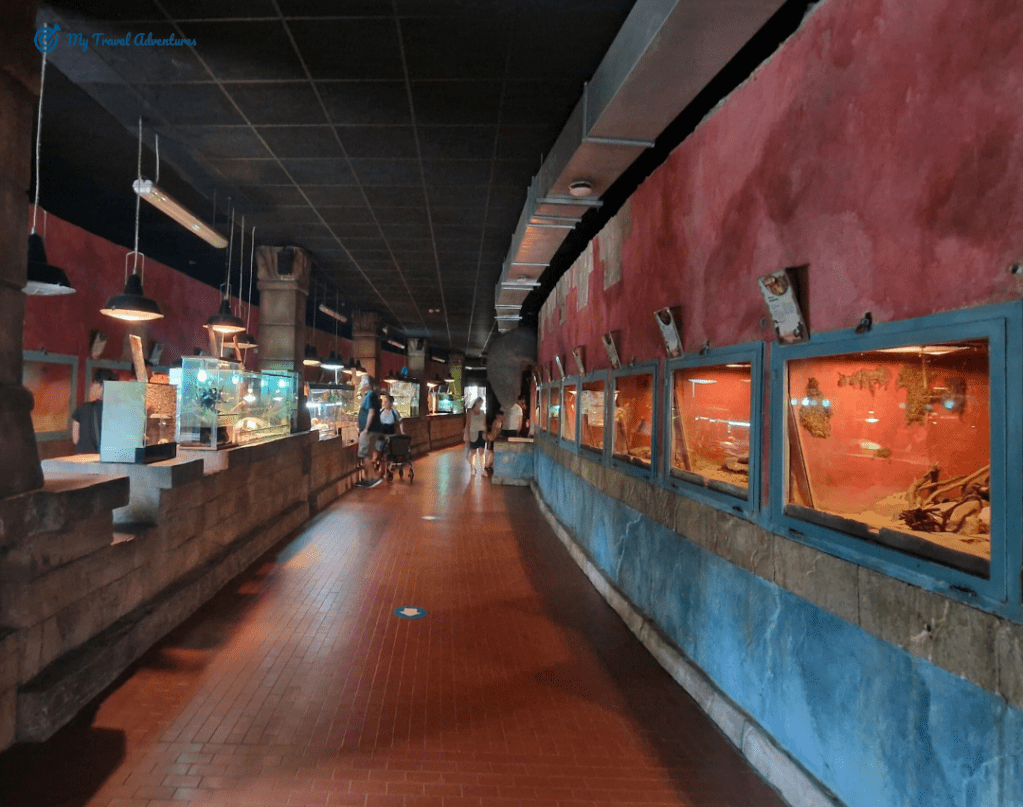 Потопете се в света на дълбокото и ще бъдете очаровани от цветните рибки на аквариума. А ако наистина сте смели, не можете да пропуснете обиколка на къщата на влечугите сред паяци, змии, игуани и скорпиони. Мястото е малко страшно на вид, усещането също е притеснително по време на влизане защото малко е тъмно, но влечугите живеят в стъклени аквариуми и няма страшно, а разнообразието е голямо – около 80 различни вида паяци и земноводни.