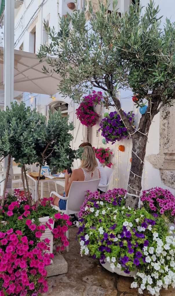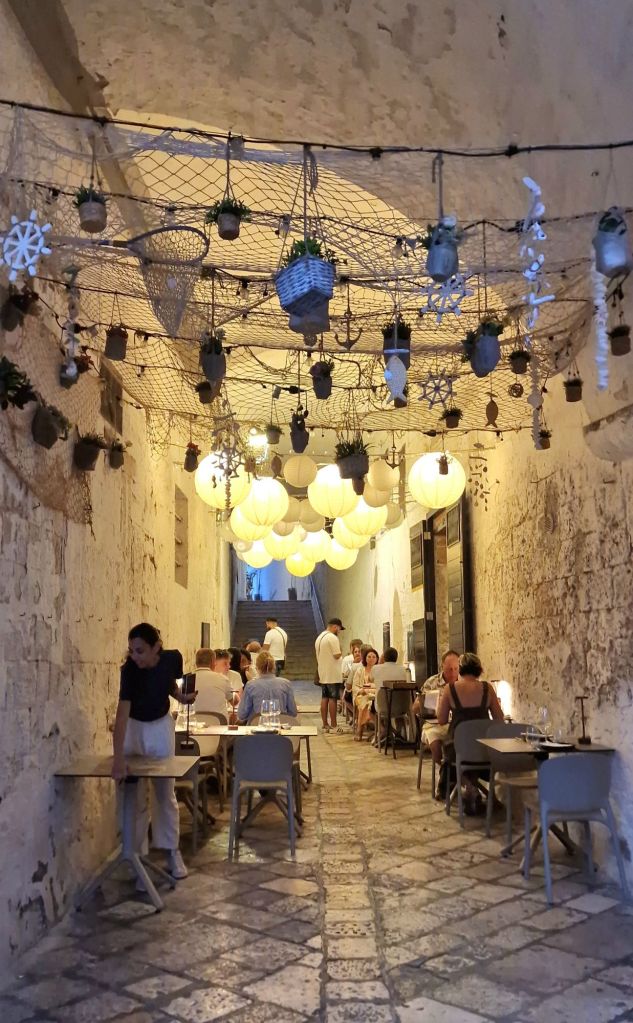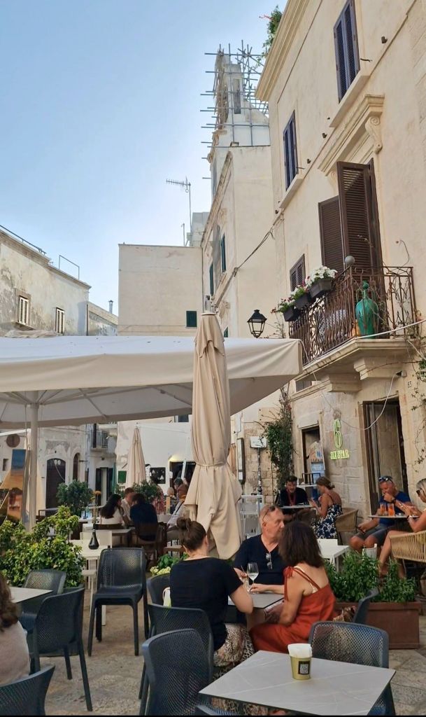 Винаги съм смятала че всеки е свободен да прави каквото иска и да хапва каквото обича. Аз ще ви запозная с храната на Полиняно, а вие ще прецените дали да опитате или не. Храненето в Polignano a Mare е уникално гастрономическо изживяване което със сигурност трябва да опитате. Въпреки че аз не обичам морска храна сред ястията от традиционната кухня на Полиняно влизат ястия базирани на сурови морски дарове, известния ориз, картофи и миди – едно от най-необикновените ястия на типичната местна кухня, задължително пробвайте Боб и цикория, червен лук и пържени чушки пълни със доматен сос и настърган кашкавал (pecorino grattugiato и pangrattato). След вашата гощавка завършете с ароматно типично кафе за Полиняно приготвено с захар, лимонова кора, сметана и амарето!