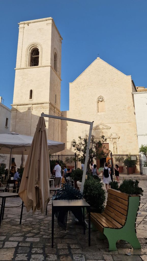 Докато се разхождаме из улиците в центъра виждаме табела Belvedere (панорамна тераса Санто Стефано) и решаваме да се отбием. Терасата на Санто Стефано винаги е претъпкана с туристи и трябва да се наредите на опашка, за да успеете да направите няколко снимки. Ето тук е момента да спомена, че ние имахме пак късмет и се добрахме до балкона без да чакаме. Но, това е едно от местата които трябва да видите задължително в Полиняно а Маре и си заслужава да изчакате в случай на голям наплив от хора. След тази панорамна красота отново се губим в исторически център в търсене на други уникални кътчета и алеи.