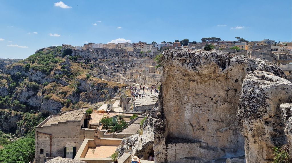 През 1993 г. Sassi di Matera (древният град) е обявен за част от световното културно и природно наследство на Юнеско. Това е древната част от града разделяйки се на два района: Сасо Кавеозо (Sasso Caveoso) и Сасо Барисано (Sasso Barisano) и най-добрият начин да откриете тези два района е да тръгнете пеша. И тук не става въпрос само за: Какво да видите за един ден, но и какво може да правите за да усетите ароматът от миналото. Предлагам ви да прекарате един ден в скитане по тесните подобни на лабиринт алеи и дворове пълни с яркозелени кактуси. Докато Sasso Barisano е претърпял значително развитие със стари реновирани пещери създаващи спиращи дъха арт пространства, бутикови хотели и традиционни ресторанти в Sasso Caveoso можете да усетите живота от скоро и до днес.
