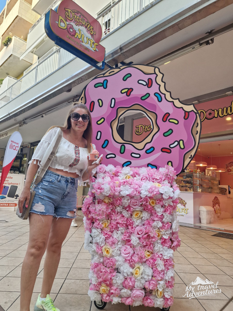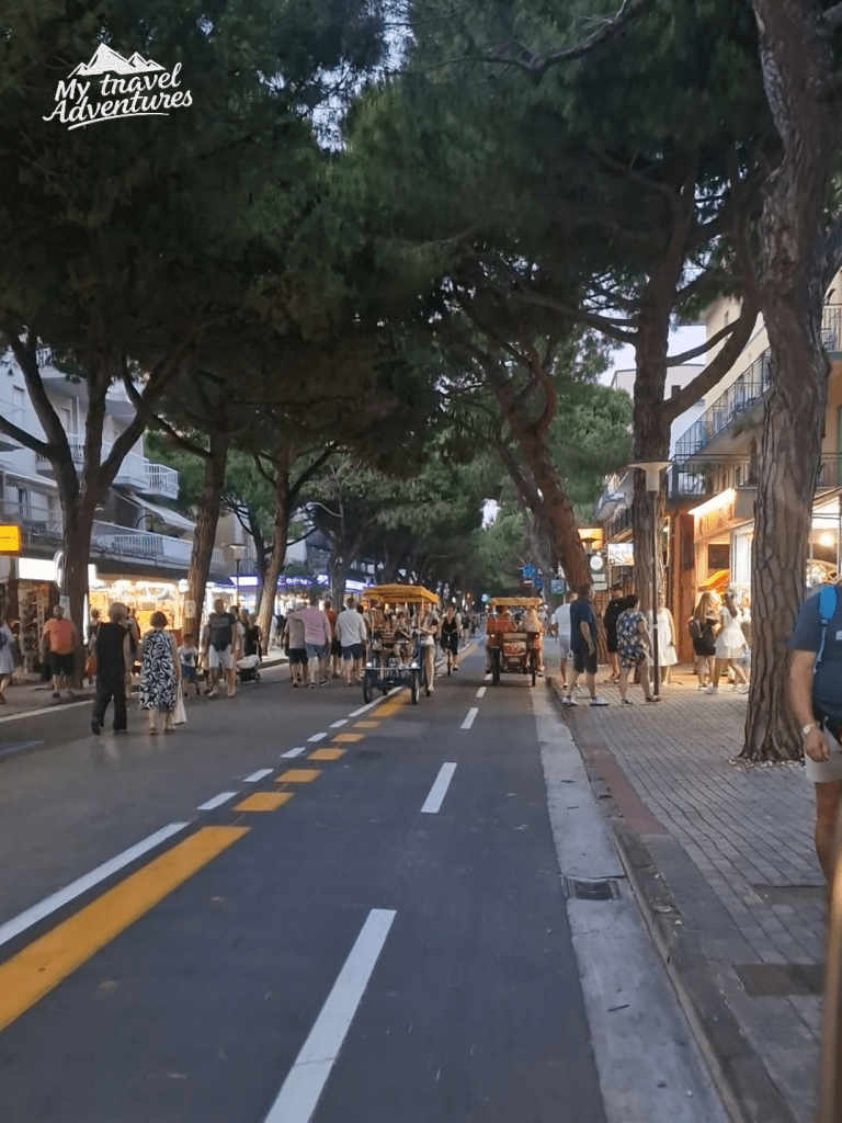 След 20:00 ч. е забранено движението на автомобили по главната улица – via Bafile и тя се превръща в най-дългата пешеходна алея в Европа. След като извървиш първите стъпки между витрините на магазините, баровете и клубовете, светлините преминават през теб като аромат на вкусна храна. Ние излизахме всяка вечер, но улицата бе толкова дълга и оживена, че всеки път стигахме до някъде и се връщахме. Неусетно се залисваш по магазинчетата за аксесоари, за дрехи и чанти. Пресичаш от едната страна и минаваш на другата, а заведенията максимално претъпкани. Наоколо се чува ритмична музика и много смях от отсрещните заведения. Усещането бе такова, че все едно се намираме в Римини, това е другия известен морски курорт за които ще разкажа в друга публикация.