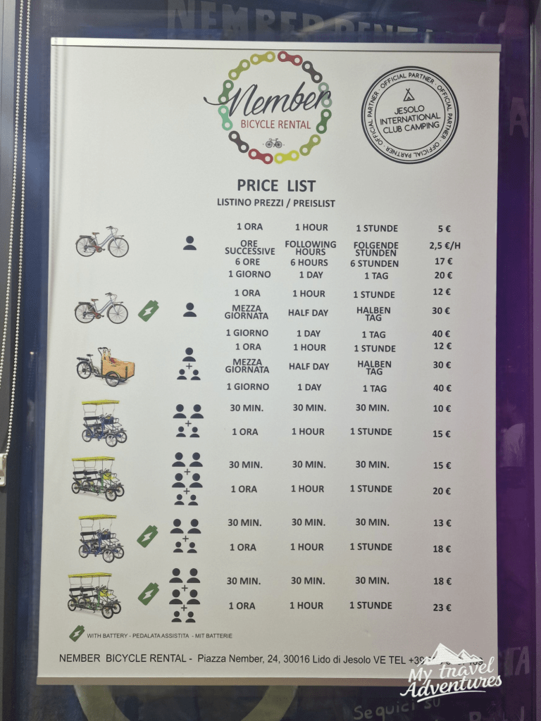 Не всички семейства обичат да ходят само на море! Има и такива като нас които предпочитат активни ваканции и Йезоло не ни разочарова. Ако сте семейство което обича да се вози на рикша и в същото време да се наслаждава на гледките наоколо, тогава Йезоло е вашето място: 12 км велоалея преминава през цялата зона! Прекрасен велосипедистки маршрут обикалящ лагуната на Венеция, която е обект на световното наследство на ЮНЕСКО.