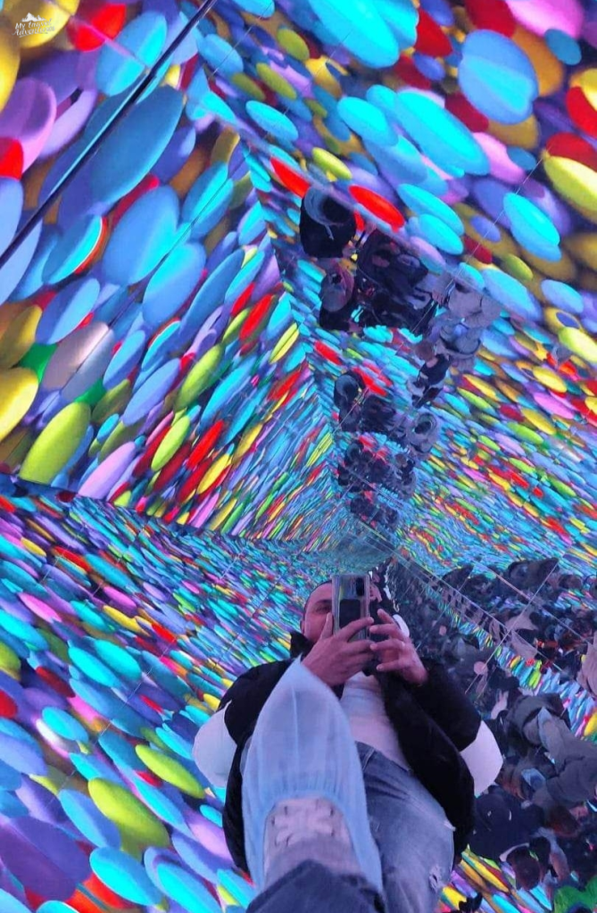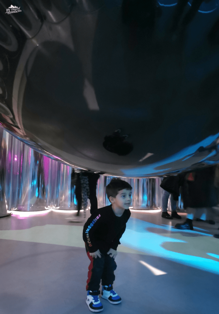 Още при самото влизане ще бъдете очаровани от залата с движещите се цветни топки. Благодарение на огледалната стая ефектът от движението става по изумителен. Тук ще се забавите поне 15 минути, защото ще се откъснете от реалния свят и ще се потопите във фантастична реалност. Във всяка зона има специфични, внушителни и завладяващи изображения или инсталации, които смесват високи технологии със звуци и цветове, създавайки сценографски игри със светлина, които оставят всички посетители безмълвни дори и най-разочарованите.
