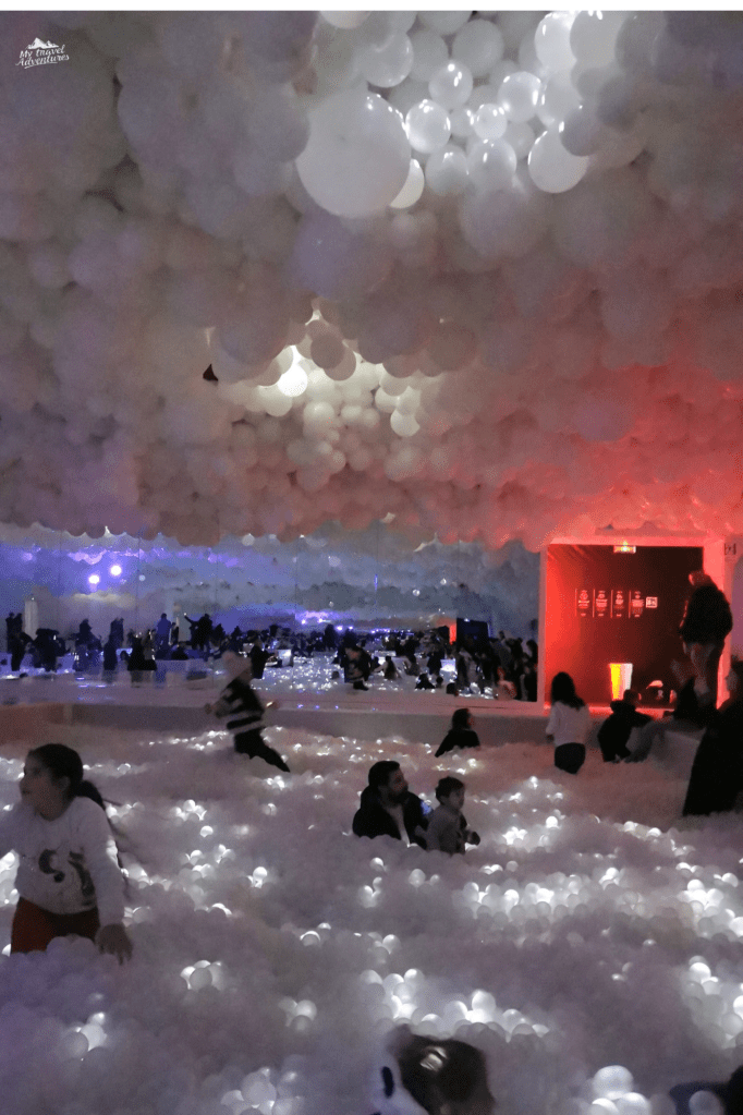 Най-уникалната и най-вдъхновяваща зона за мен е гигантският басейн с белите топки. Тук може да полетите и да се гмуркате без да се притеснявате че може да пострадате. Семействата с малки деца ще останат наистина доволни защото вълнението е повече от необходимото. Дори се налага да изтърпите момента когато малките палавници ти скачат върху главата. Ха-ха Въпреки това ние със сина ми много се забавлявахме, въртяхме се на ляво и дясно дори моя съпруг скочи в басейна. Препоръчвам ви наистина не пропускайте да отделите един ден за един скок в басейна с топките. Времето за това забавление е само около 15 минути и аз много съжалявам, че е толкова малко.